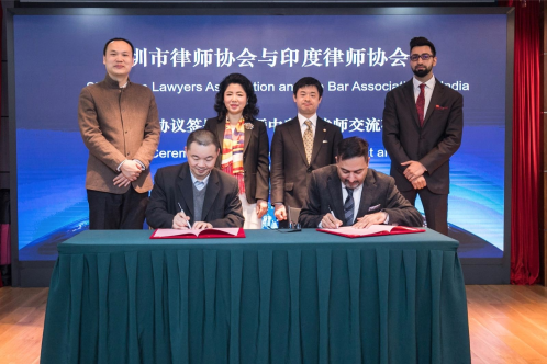 2018年1月9日上午,深圳市律师协会与印度律师协会合作协议签署仪式暨中印日律师交流研讨会在深圳市律师协会成功举行。印度律师协会候任主席、金砖国家法律论坛(印度)负责人、亚太法律协会前任会长Prashant Kumar先生,印度律师协会会员Paurush Kumar先生,日本第二东京辩护士会国际委员会副委员长臼井隆行先生、委员浅田大先生、川上爱女士,深圳市律师协会会长林昌炽、副监事长王劲松、国际与港澳台工作委员会主任高文杰等出席,五十余名涉外律师参加。会议由深圳市律师协会副会长韩俊主持。