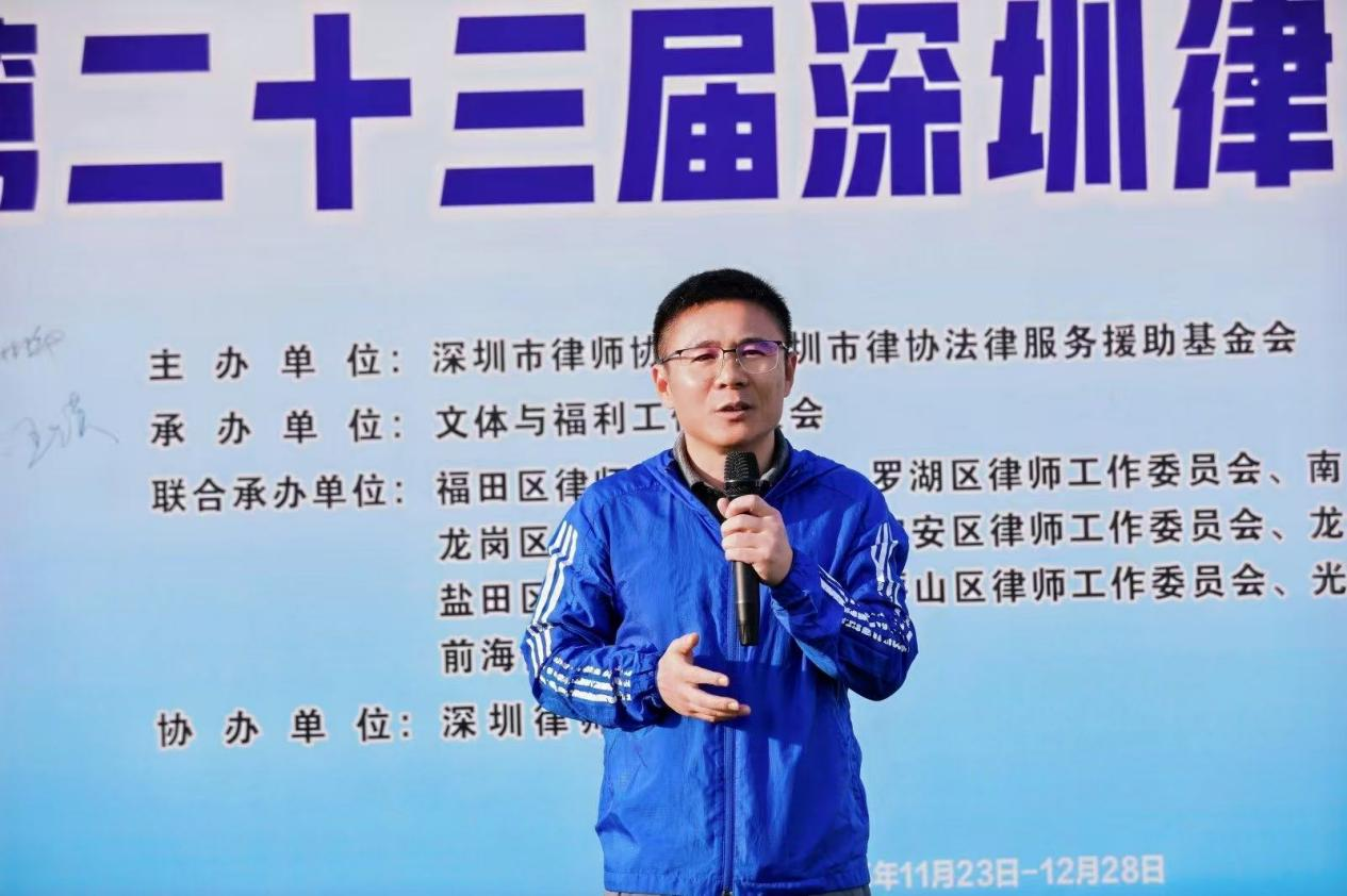 福田区司法局二级调研员罗展致开幕词并表示:深圳律师足球在深圳市业余足球界具有重要影响力,其将会一如既往地支持深圳律师运动会相关赛事工作。