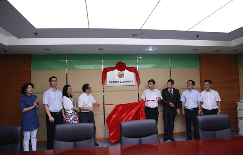 10月28日上午,深圳市律师协会人民调解委员会正式揭牌成立,福田区区长肖亚非、市司法局局长蒋溪林、福田区副区长孟曼、福田区司法局局长胡星宏、副局长刘平、罗展、马晓歌,我会会长高树、副会长黄思周、胡宁可、秘书长王红出席了揭牌仪式。