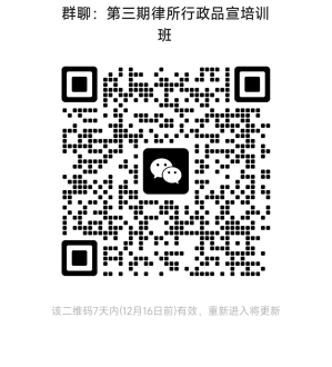2.报名完成后扫码加入培训班微信群(实名制:姓名-律所名称),工作人员根据报名情况确认报名成功名单,后续相关事宜通过微信群告知。