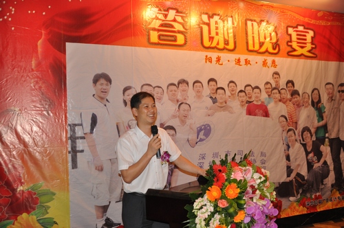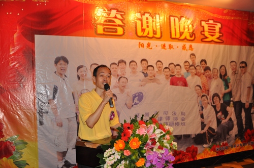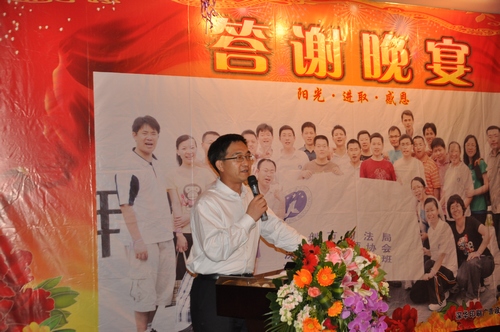 为表达对律师协会 和授课 老师的感激之情,首届青年律师研修班的学员们自费筹办了主题为“阳光、进取、感恩”的答谢晚宴, 5月 27日晚 师生们欢聚在中心区潮泰轩酒店,共叙青训班办班及学习的心得与体会。市司法局律师公证管理处李玉祥处长、市律协余俊福会长、市律协张善华监事长、王丽娜、梁建东、蔺晓青副会长、市律协党委张勇书记等领导和部分理事、讲师团成员受邀前来与青年研修班全体学员欢聚一堂。