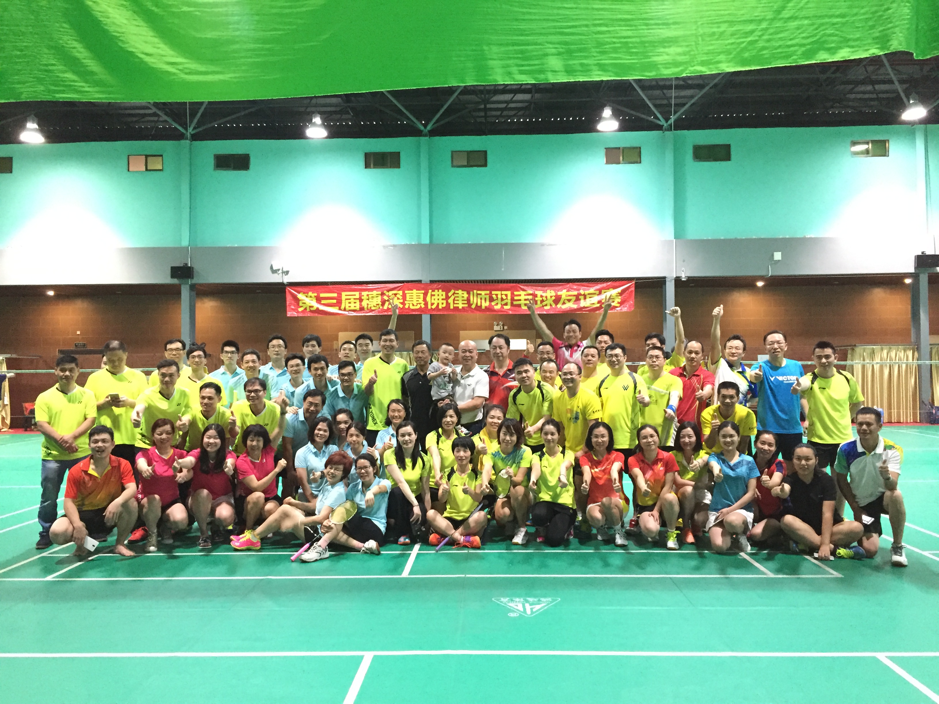 2017年5月20日,由深圳市律师协会、广州市律师协会、惠州市律师协会及佛山市律师协会联合主办,深圳律协承办的第三届穗深惠佛律师羽毛球友谊赛在深圳龙岗大与羽毛球馆成功举行。